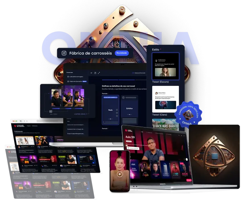 OMNIA: Inteligência artificial que escreve, cria imagens, carrosséis e edita vídeos para acelerar sua produção.