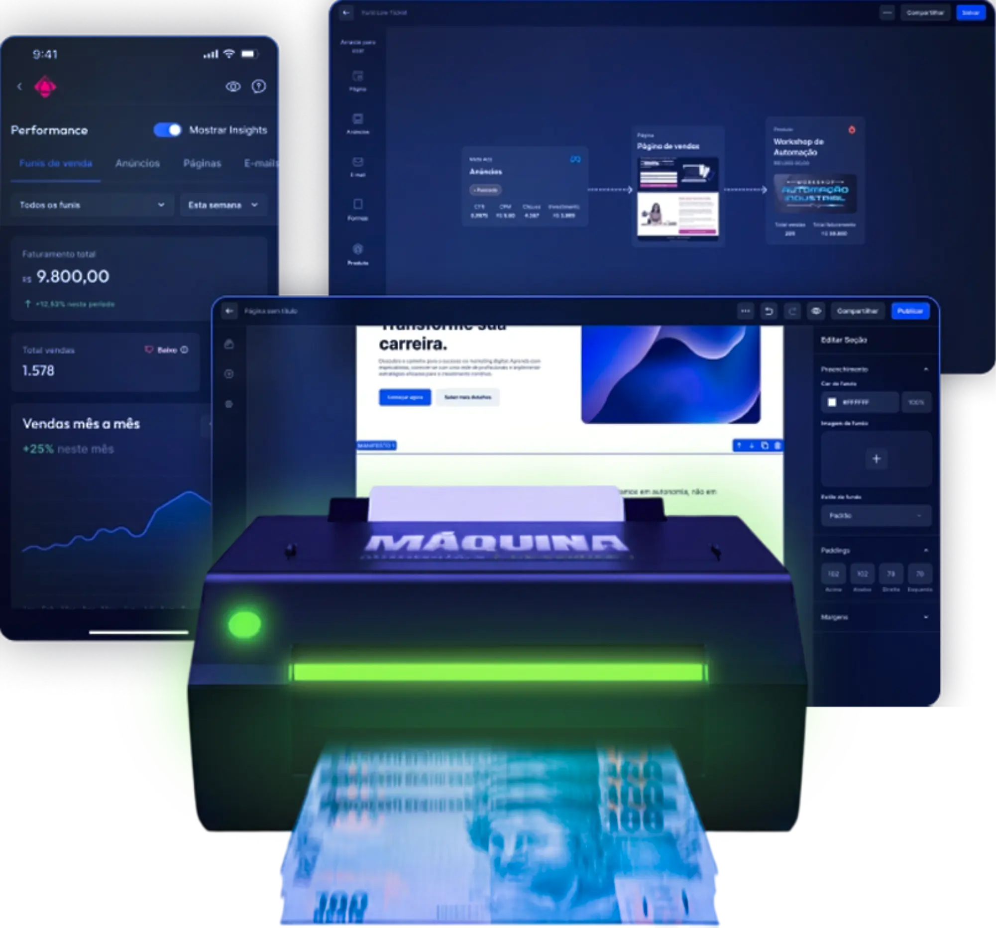 Com uma única assinatura, você desbloqueia a plataforma mais completa do Brasil para criar e escalar funis low ticket.
